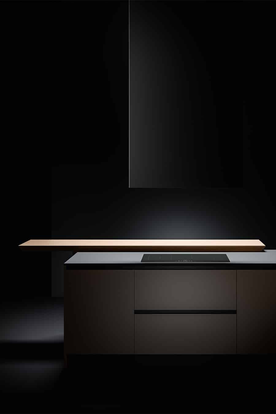 Les suggestions et les souvenirs accompagnent la pleine viabilité des espaces, interprétés par la porte à châssis en bois massif Noce dans l’îlot et la porte à châssis en mdf laqué mat Metro dans les colonnes. Le design rigoureux et essentiel est emphatisé par l’ouverture push-pull des portes et par le plan de travail en Silestone de grande épaisseur.