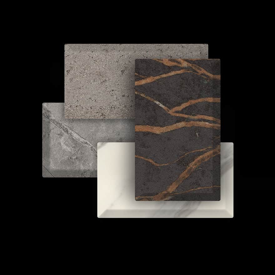 Dekton® est un mélange innovant et sophistiqué de matières premières utilisées en bâtiment, verre, matériaux porcelaines de dernière génération et surfaces en quartz. A travers le processus de sintérisation et d’ultra-compaction on obtient une surface sans porosité et sans défauts superficiels. Les caractéristiques sont l’élevée résistance aux rayures, aux taches et à l’abrasion. Pour réalisations particulierès non prévues dans ce tarif, vérifier avec Armony pour la faisabilité et le prix.